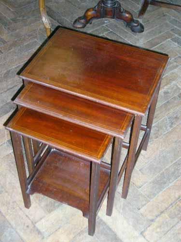 An Edwardian inlaid mahogany nest of three tea tables, W 45.5cms D 33cms (the largest) £80-100
