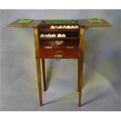 An Edwardian inlaid mahogany work table with well fitted interior and flap to the front, inlaid satinwood stringing and raised on square tapering supports 16" £450-550