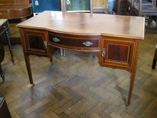 An Edwardian inlaid mahogany writing table, H 81cms W 122cms £150-250