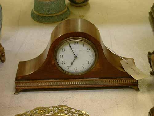 An Edwardian mahogany 'Napoleon hat' mantel timepiece, H 16cms W 28cms £20-30