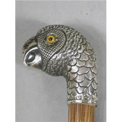 An Edwardian silver mounted parasol, the silver handle in the form of a parrot on a bamboo shaft, hallmarked London 1910, maker W.B., struck 'Cox', 89cm long Est. 150/250