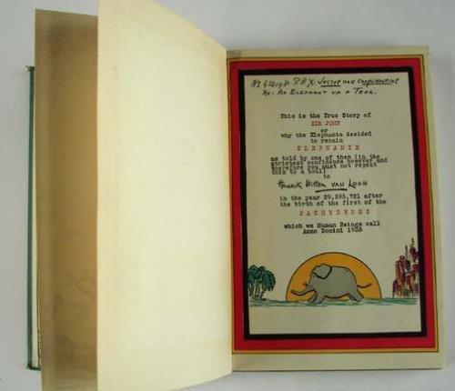 An Elephant Up A Tree, by Willem Hendrik Van Loon, published by Simon and Schuster, of New York, 1933, from the Estate of Charles Ragland Bunnell, Condition: Good, cover wear, name written inside, no dust jacket
