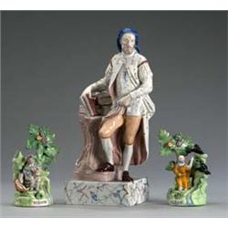 An Enamelled 'Pearlware' Figure of Geoffrey Chaucer, early 1800's], porcellaneous, standing with literary works beside an allegorical socle upon a marbled rectangular base, rear of base incised 155, {31cm} {See illustration} £300-500