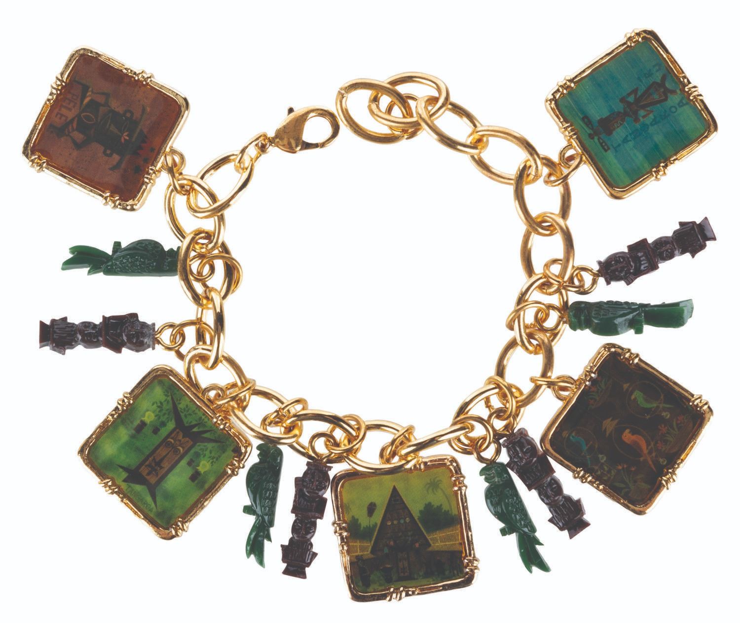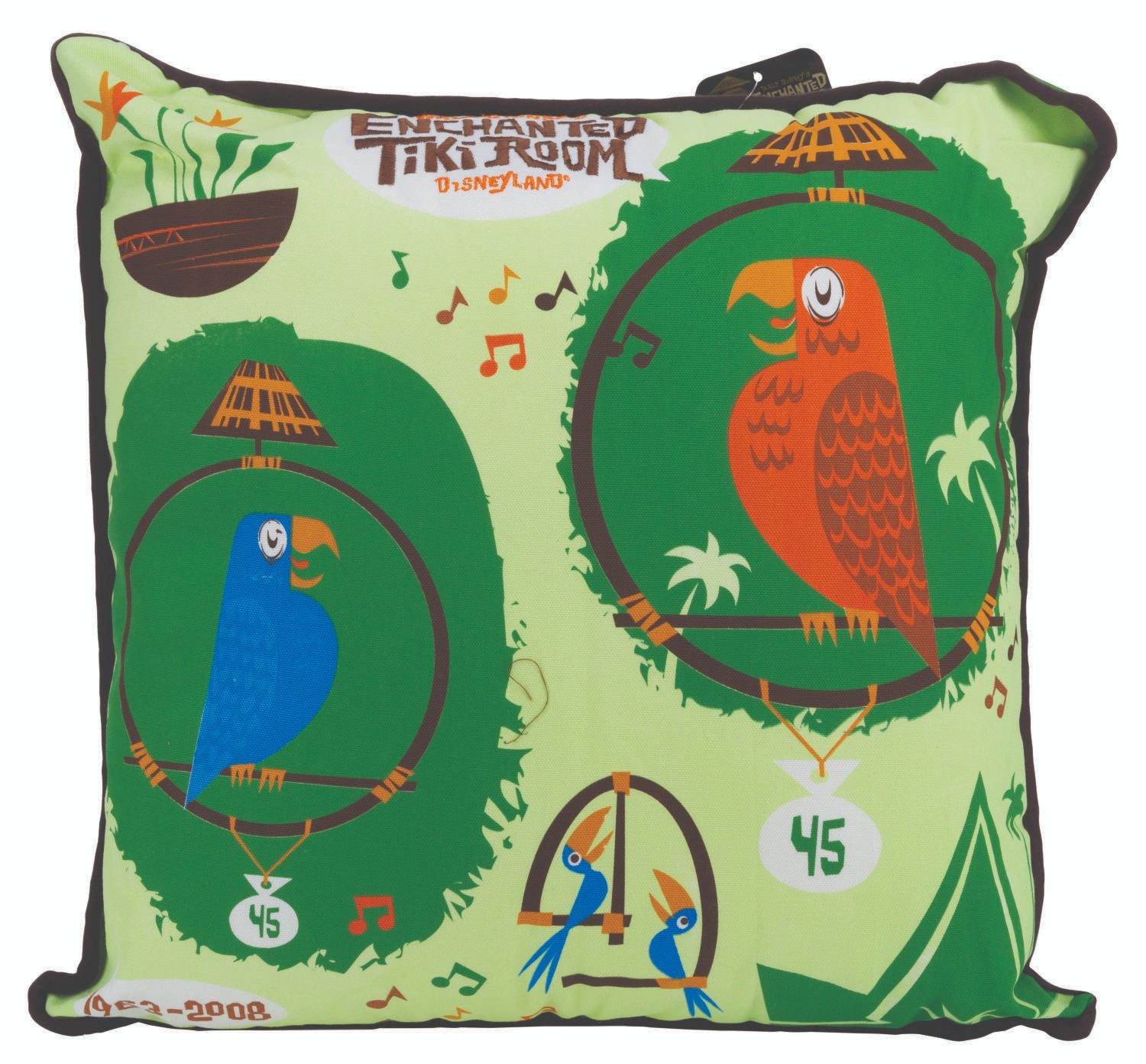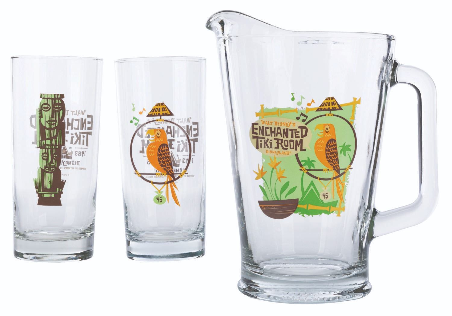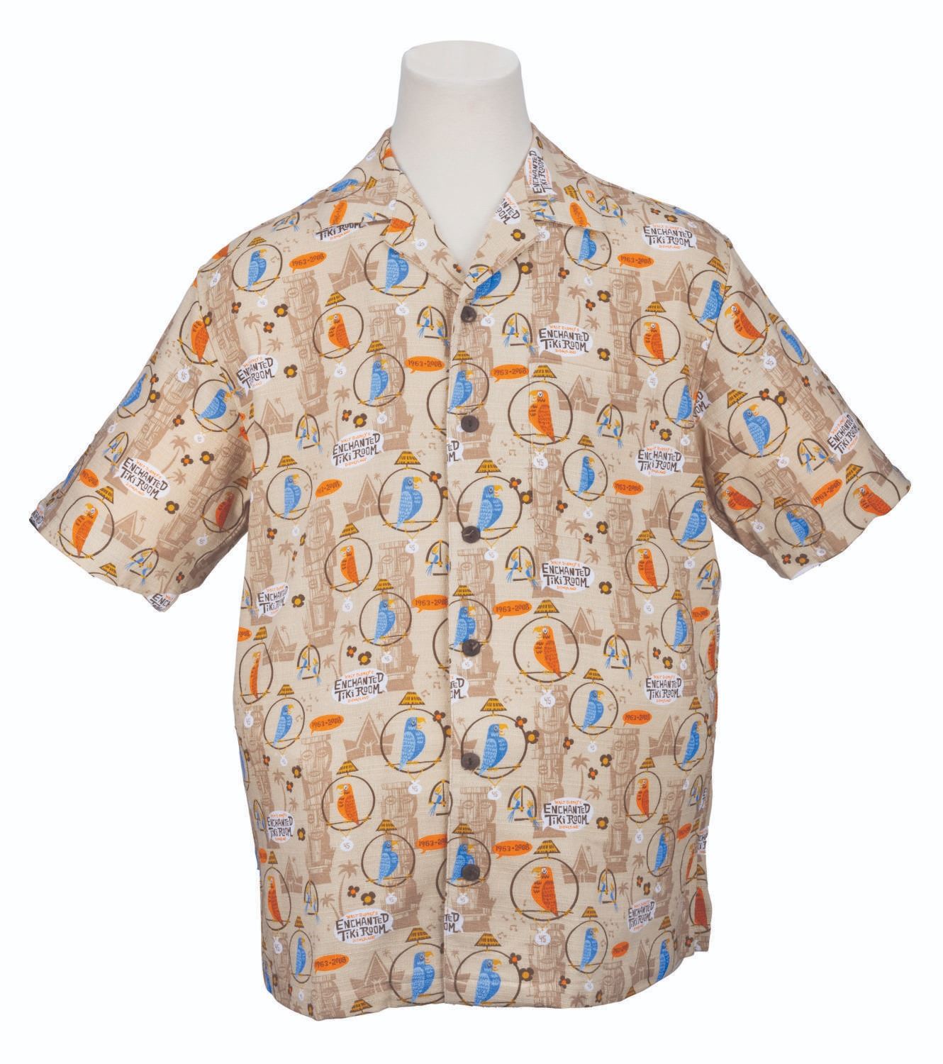 (Disneyland, 2008) A collection of fifteen souvenirs from the 45th anniversary of Walt Disney’s Enchanted Tiki Room, inspired by art from Amanda Visell. Included are a pitcher, two shot glasses, two glasses, a mug, a pillow, a mousepad, a dish towel, a four coaster set, a bag, a T-shirt, two button-up shirts, and a boxed charm bracelet. Ranging in size from the 2” x 2.5” tall shot glasses to the 16.5” x 16.5” pillow and with shirts all size L, the items are in good to fine condition with light scuffs, folds from storage, stains on the T-shirt, chips on the pitcher, and light pilling on the towel. This lot will require special shipping arrangements. Please inquire before bidding.
