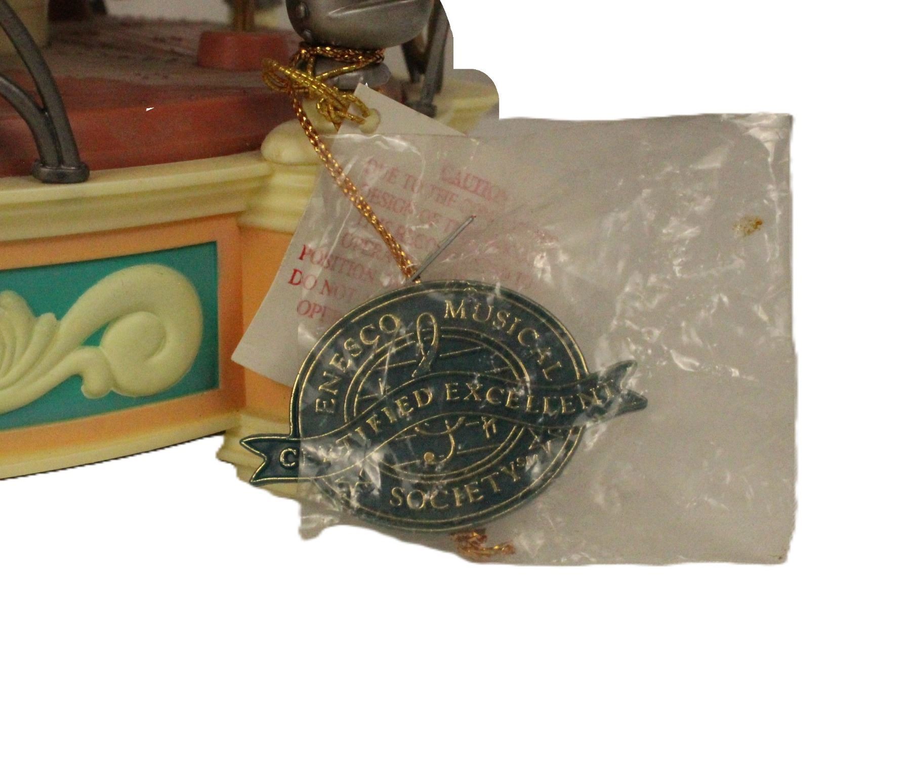 (Enesco, 1995) Sir Mickey Mouse to the Rescue Musical Carousel. Mickey, Goofy, and Donald have rescued Minnie from the fire-breathing dragon as the carousel lights up and spins around. It plays “Once Upon a Dream.”