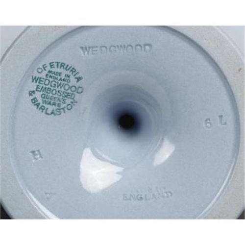 <B>An English Porcelain Compote<BR></B></I>Wedgwood<BR>Circa 1900<BR>4 inches high x 6-1/4 inch diameter<BR>Mark underside<BR><BR>The pale blue glazed compote decorated with white grapevine relief to the rim and foot.<BR><BR><b>Shipping:</b> Requires 3rd Party Shipping (<a target="_blank" href="http://www.heritageauctions.com/common/shipping.php">view shipping information</a>)