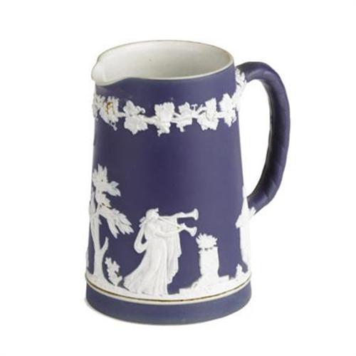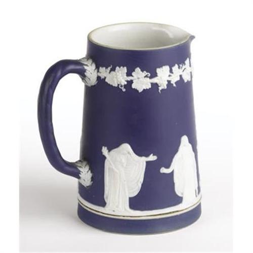 <B>An English Porcelain Pitcher<BR></B></I>Tunstall<BR>Nineteenth Century<BR>The blue Adamsware pitcher decorated with classical scenes in white relief<BR>Marked underside<BR>5 inches high x 3.2 inches wide<BR><BR><b>Shipping:</b> Requires 3rd Party Shipping (<a target="_blank" href="http://www.heritageauctions.com/common/shipping.php">view shipping information</a>)