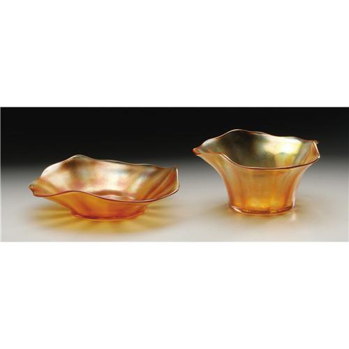 <B>An English Glass Bowl and Underplate</B></I><BR><B>Thomas Webb & Sons, Last Quarter Nineteenth Century</B></I><BR><BR>In the 'Iris' pattern, marked to the underside of each <I>WEBBS GLASS IRIS</B></I><BR>The bowl: 2.6in. high x 4.6in. diameter