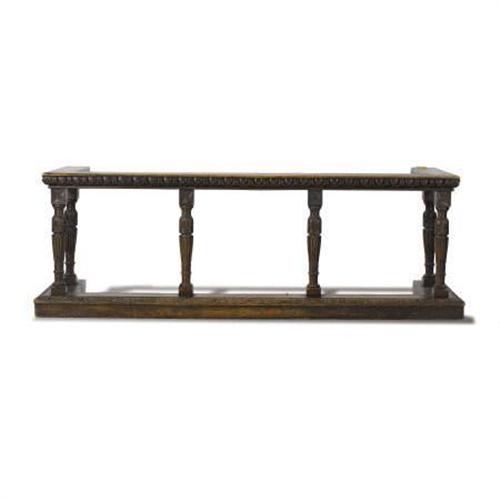 <B>An English Wooden Fender<BR></B></I>Unknown maker<BR>Circa 1875<BR>25 inches high x 75 inches wide x 26 inches deep<BR>Unmarked<BR><BR>The carved oak fender in a dark finish.<BR><BR><b>Shipping:</b> Requires 3rd Party Shipping (<a target="_blank" href="http://www.heritageauctions.com/common/shipping.php">view shipping information</a>)