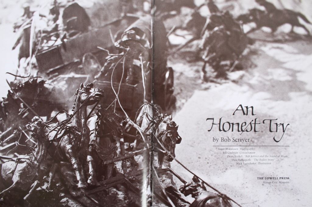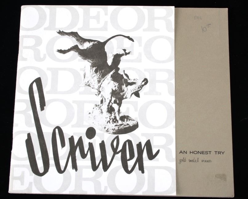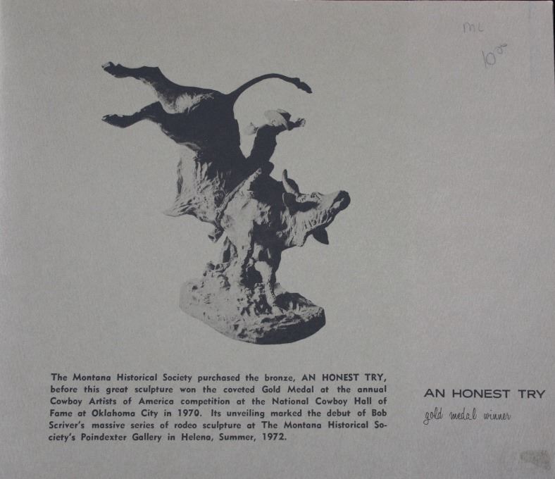 For your consideration is the book, An Honest Try, by world renowned sculptor Bob Scriver, first edition 1975. A collection showcasing Bob Scriver's award-winning Rodeo Series of Sculpture. Scriver is one of just a handful of Western artists elected to both the Cowboy Artists of America and the National Academy of Western Art. Also included is the booklet by the same name, an exhibition catalogue of the rodeo oriented sculptures of Scriver.