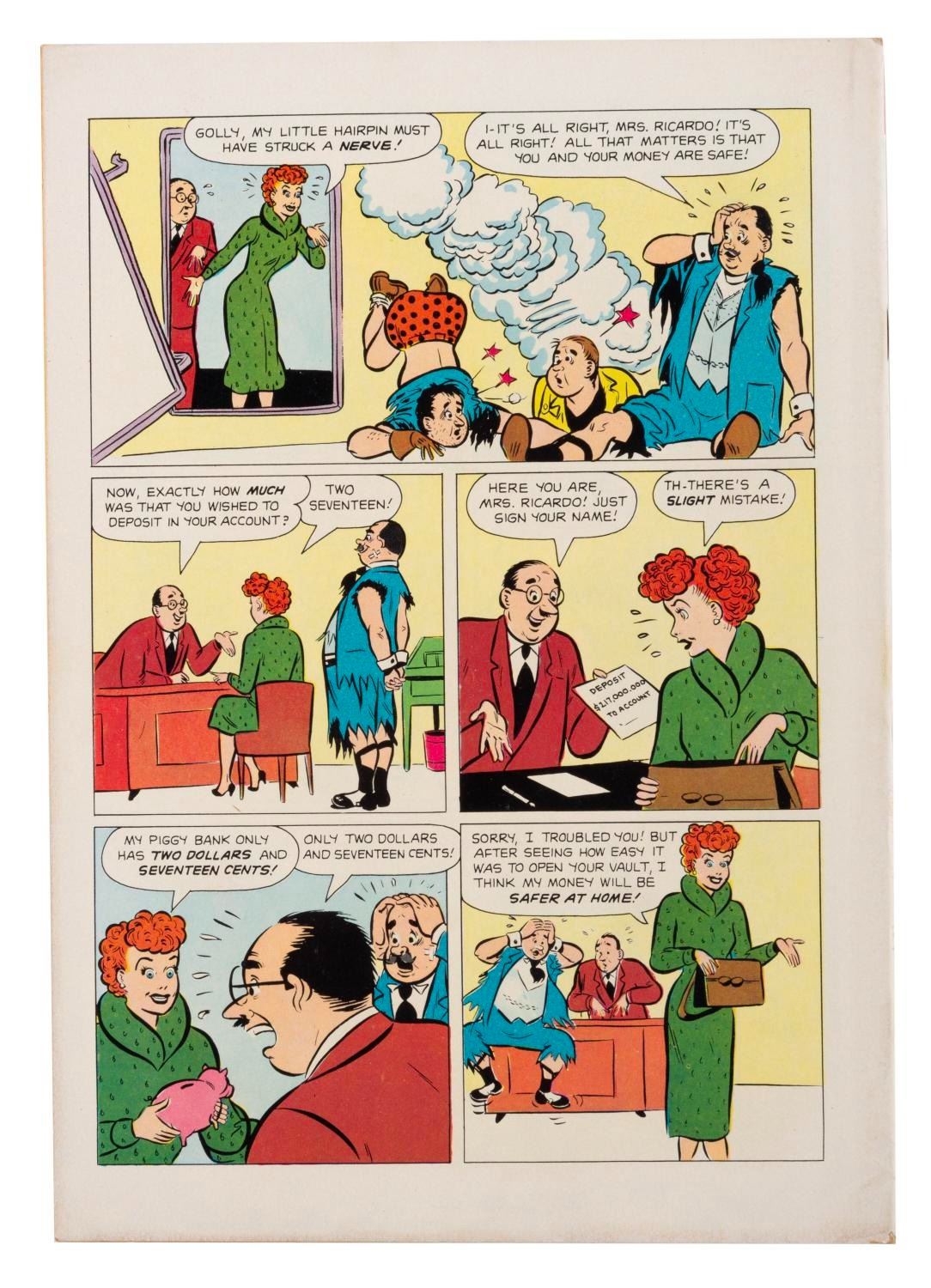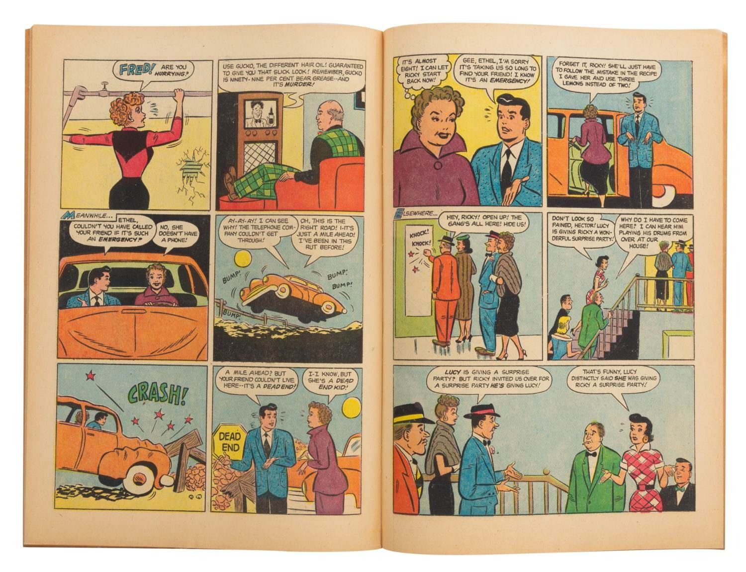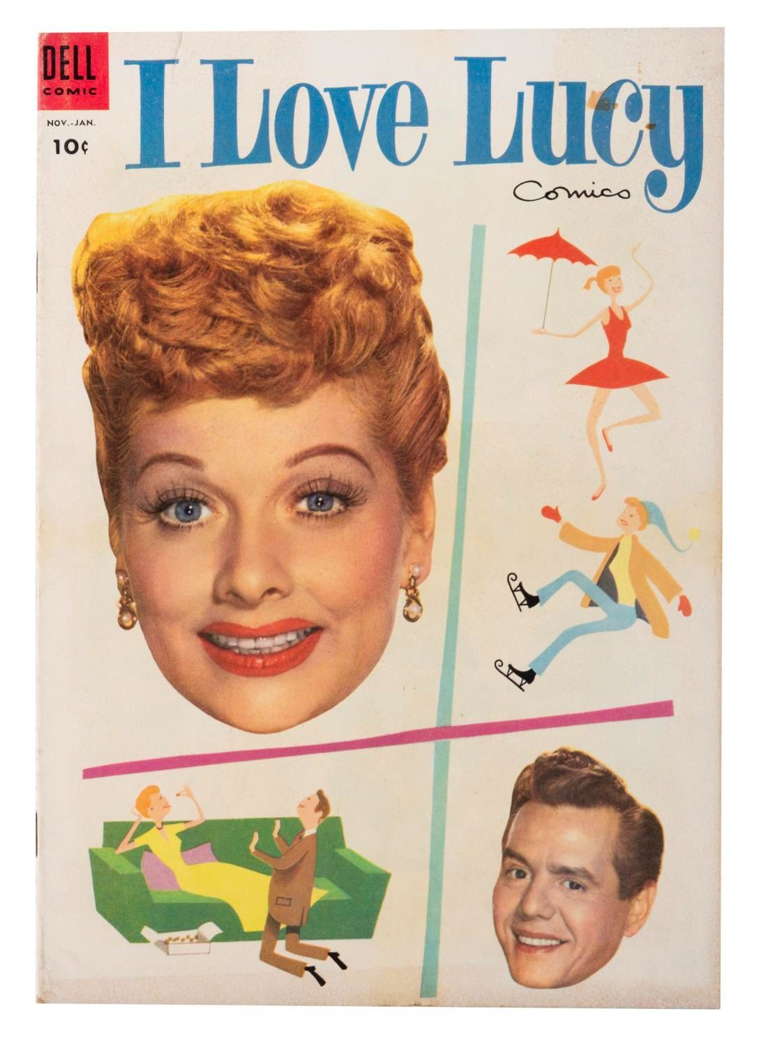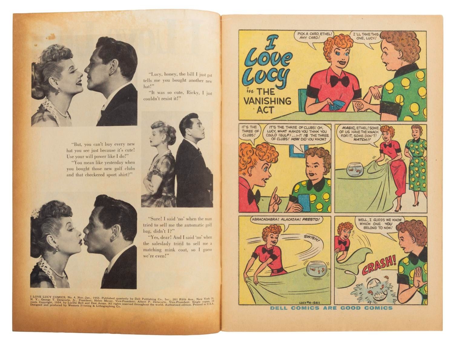 (Dell, 1955) An "I Love Lucy" #4 comic book, published by Dell Comics. Measuring 7.25" x 10.25", the comic book displays in good condition with creases, stains, tears up to 0.75" long, and discoloration from age.