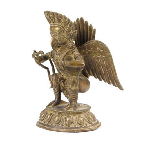 <B>An Indian Brass Figure of Garuda</B></I><BR>Unknown maker<BR>Nineteenth Century<BR>The figure of Garuda, the Goddess of Gannda, played an important role during the time of Shou Ram<BR><BR><b>Shipping:</b> Requires 3rd Party Shipping (<a target="_blank" href="http://www.heritageauctions.com/common/shipping.php">view shipping information</a>)