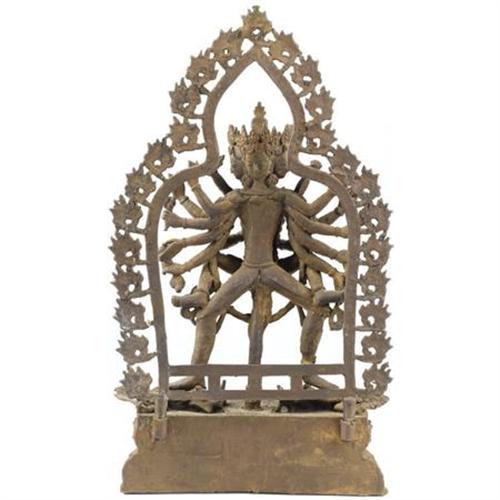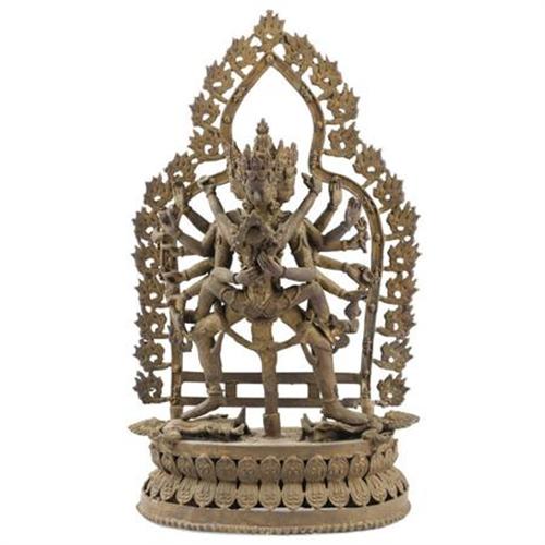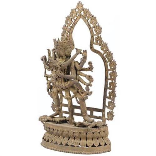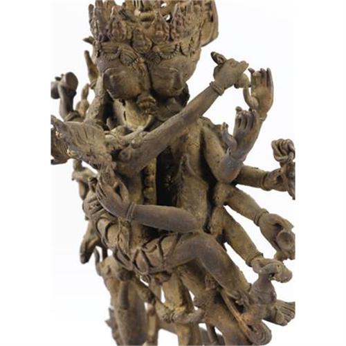 <B>An Indian Bronze Deity<BR></B></I>Unknown maker<BR>Nineteenth Century<BR>The deity with four faces and ten arms holding various elements, embraced by a smaller figure<BR>Unmarked<BR>17 inches high x 9 inches wide<BR><BR>Provenance: <BR>From the collection of a local physician, this figure was purchased by him in Germany 15 years ago.<BR><BR><b>Shipping:</b> Requires 3rd Party Shipping (<a target="_blank" href="http://www.heritageauctions.com/common/shipping.php">view shipping information</a>)