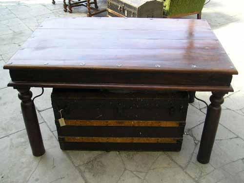 An Indian hardwood table and a cabin trunk, H 77.5cms L 135.5cms and L 91cms £60-90