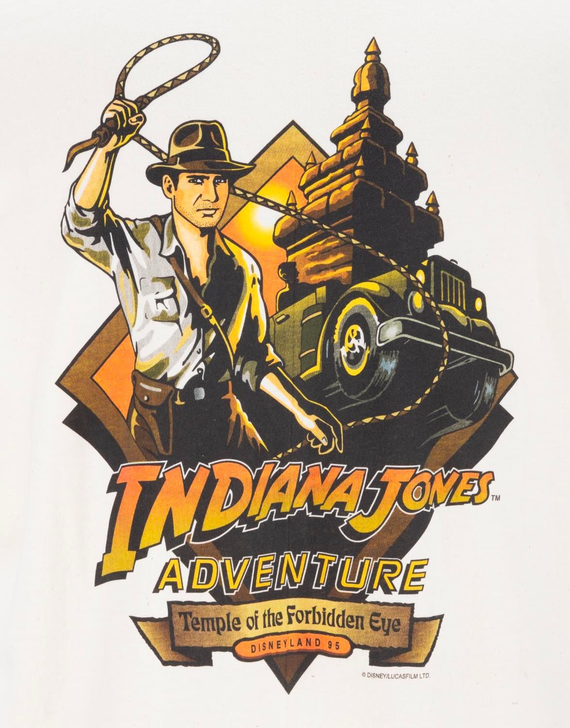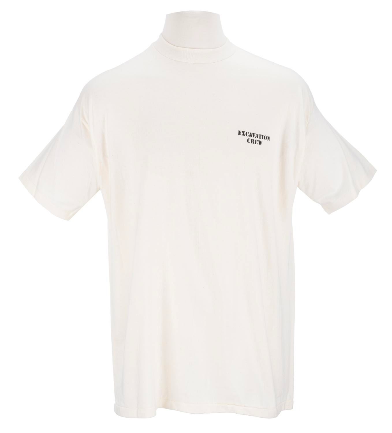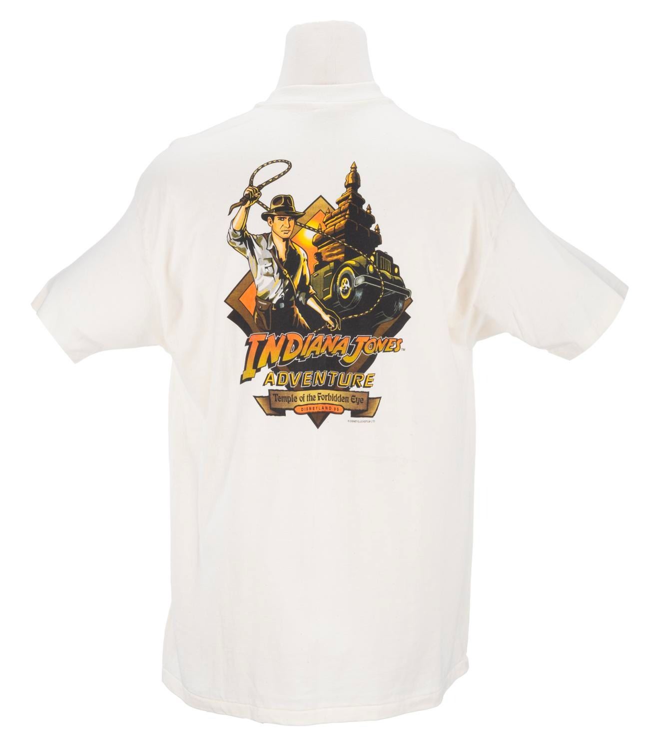 (Disneyland, 1995) An Indiana Jones Adventure Cast Member exclusive t-shirt from Disneyland. Labeled “excavation Crew” on the breast, the back features early artwork for the attraction that was quickly discontinued. Labeled a size “X Large” the 100 percent cotton Hanes T-shirt is in fine unused condition.