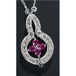 An Italian ruby and diamond necklet, the front designed to form either an open-work diamond circl...
