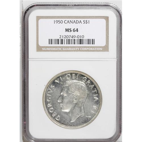 An NGC certified dollar trio as follows: 1950, MS64, pr