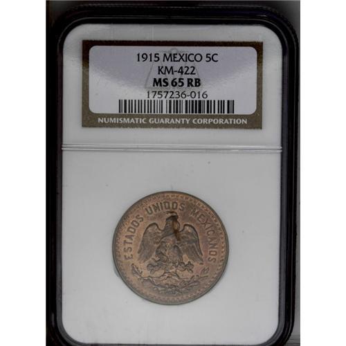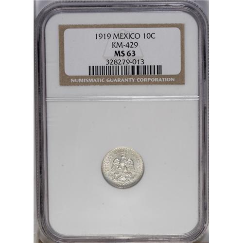 <B>An NGC threesome including:</B></I> 5 Centavos 1915, KM422, MS65 Red and Brown; silver 10 Centavos 1919, KM429, MS63; 20 Centavos 1919, KM436, MS63 NGC.