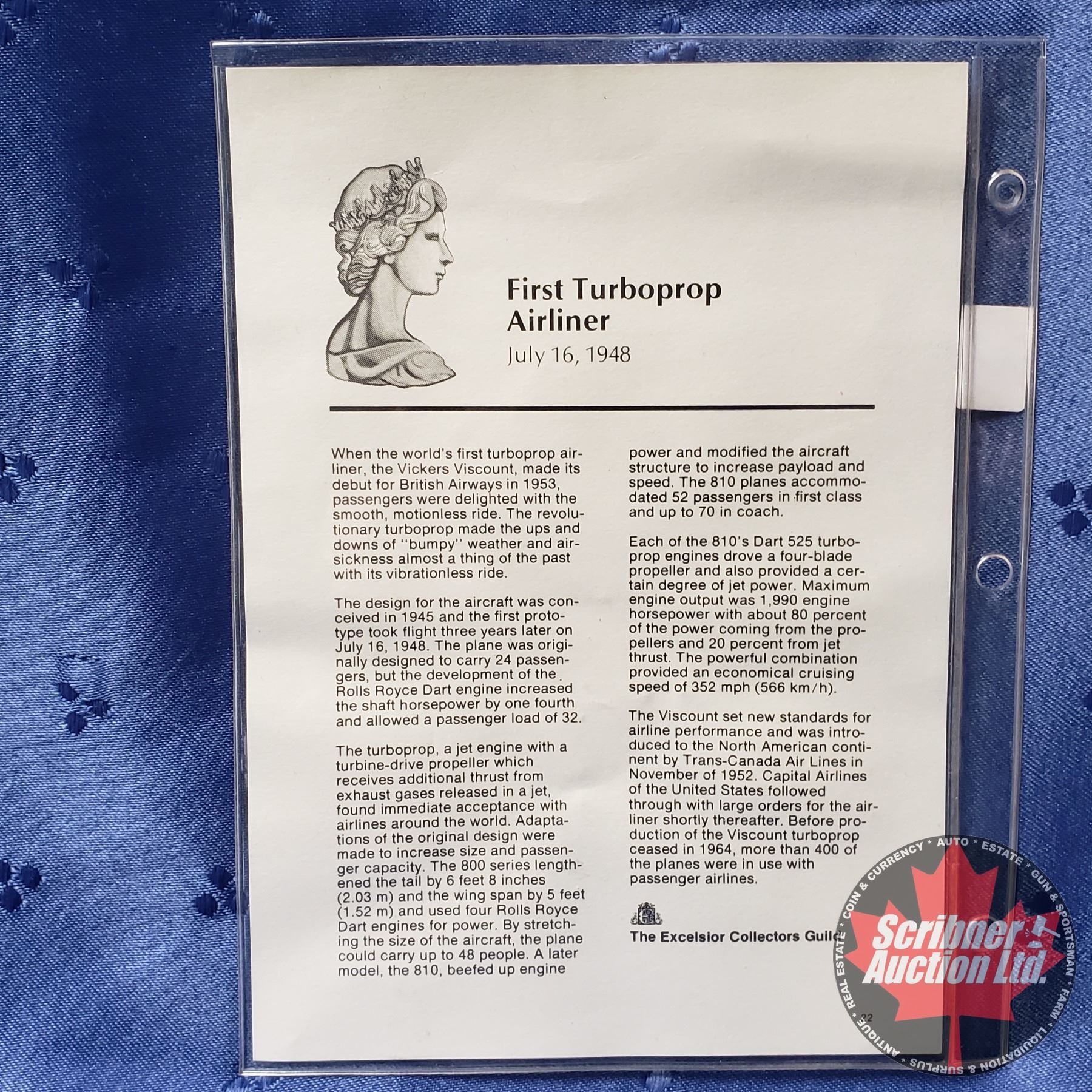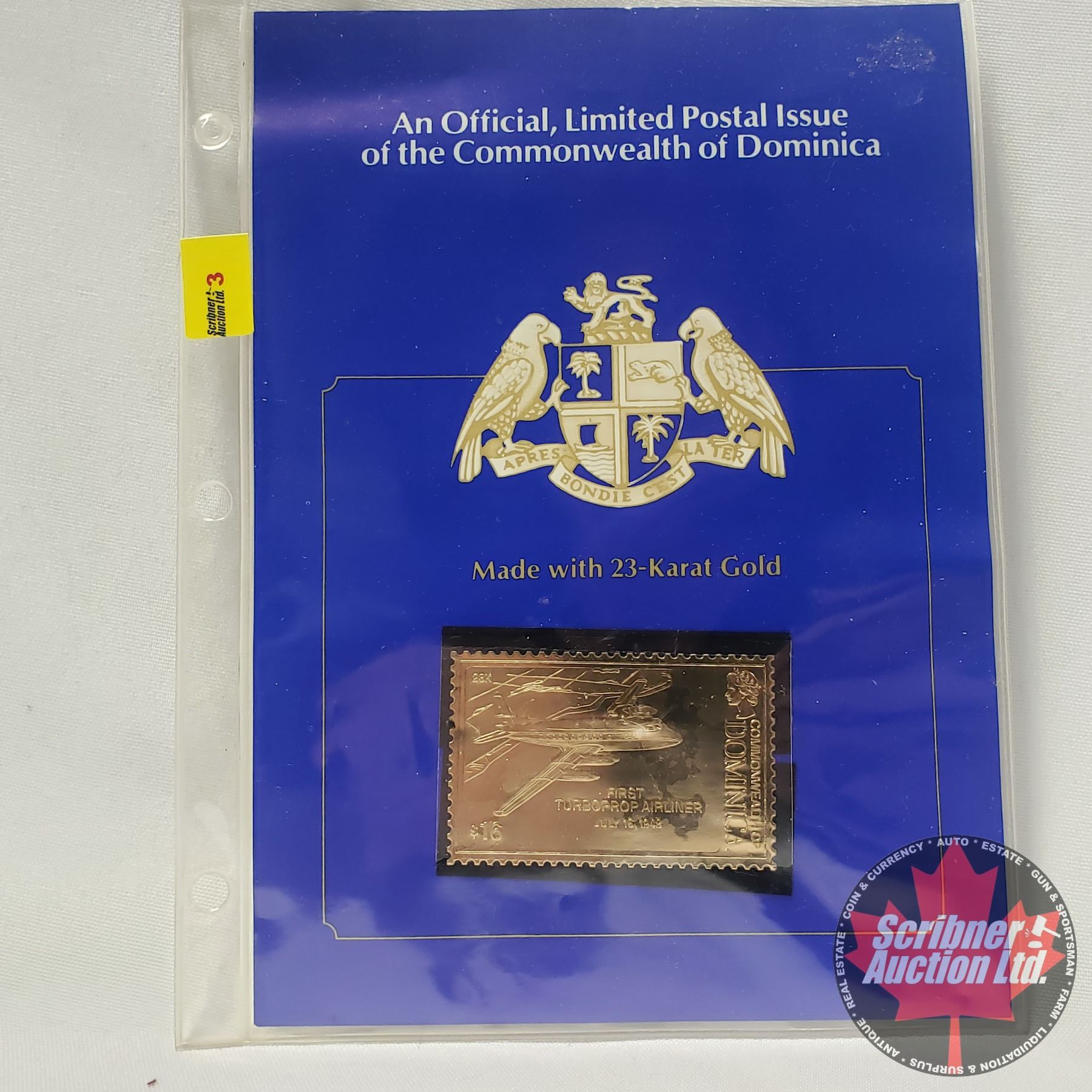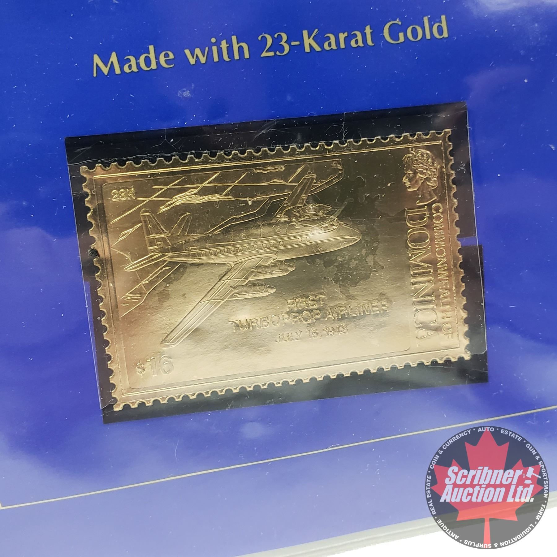 An Official, Limited Postal Issue of the Commonwealth of Dominica $16 (Made with 23-Karat Gold) "First Turboprop Airliner July 16, 1948"