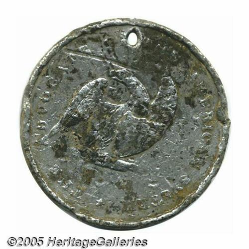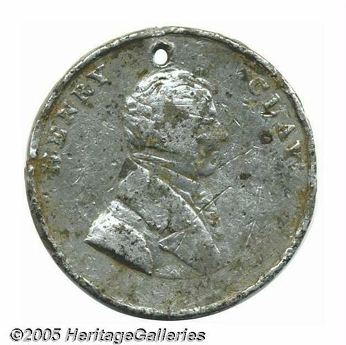 <B>An Oh-So-Rare Unlisted 1828 "Hopeful" Medal for Henry Clay</B></I> Sullivan lists nothing earlier than 1832 for Clay. The obvious mate to A Jack 1828-7, it shares the same reverse, although the Clay obverse was apparently previously unknown! It is a rare occurrence indeed when a new variety of one of these large early white metal campaign medals is discovered. Although the present example is in rough condition as shown, it may well be the only surviving example! 38 mm. Lot:256