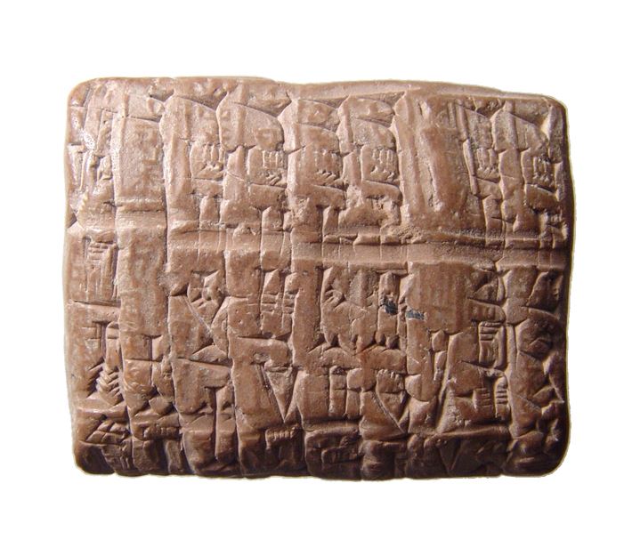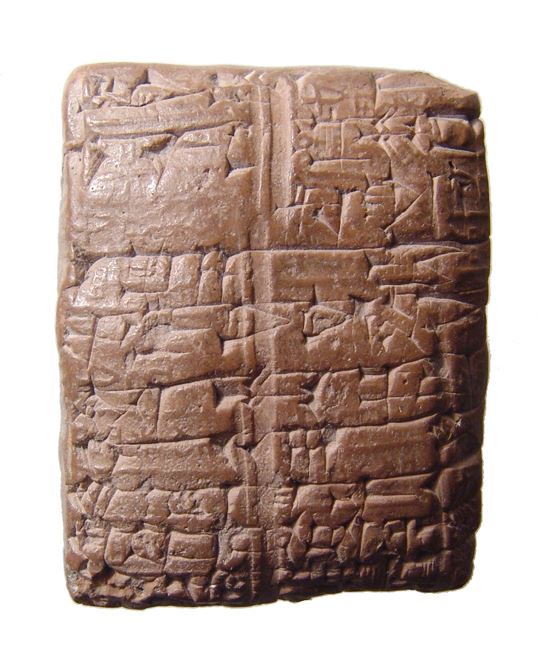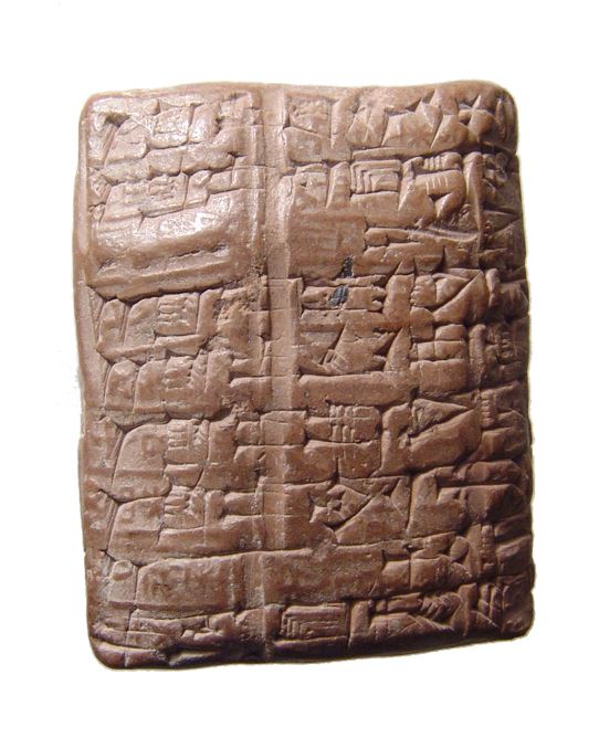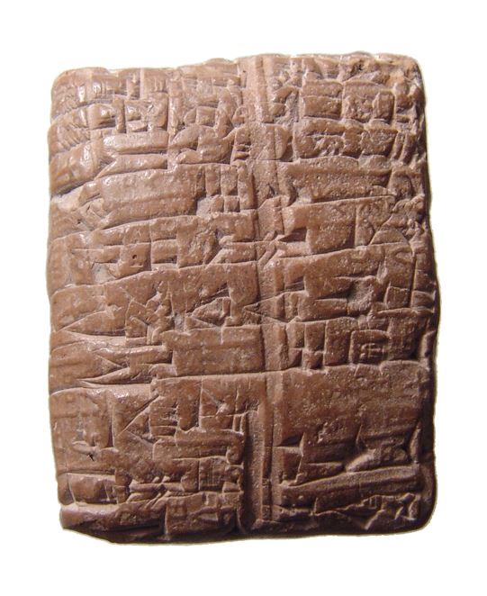 An Old Babylonian cuneiform tablet, c. 1900 - 1750 BC, beautifully preserved with multiple registers of cuneiform text on either side and along the edges giving an account of 15 animals, ewes and goats, given as payment in rations to messengers. 'Year when Gimil-Sin became king', ie. The first year of his reign. 1 7/8 in x 1 1/2 in (4.9 x 3.8 cm). Intact with light deposits. Comes with original antique description with partial translation. Ex Essex, England estate.