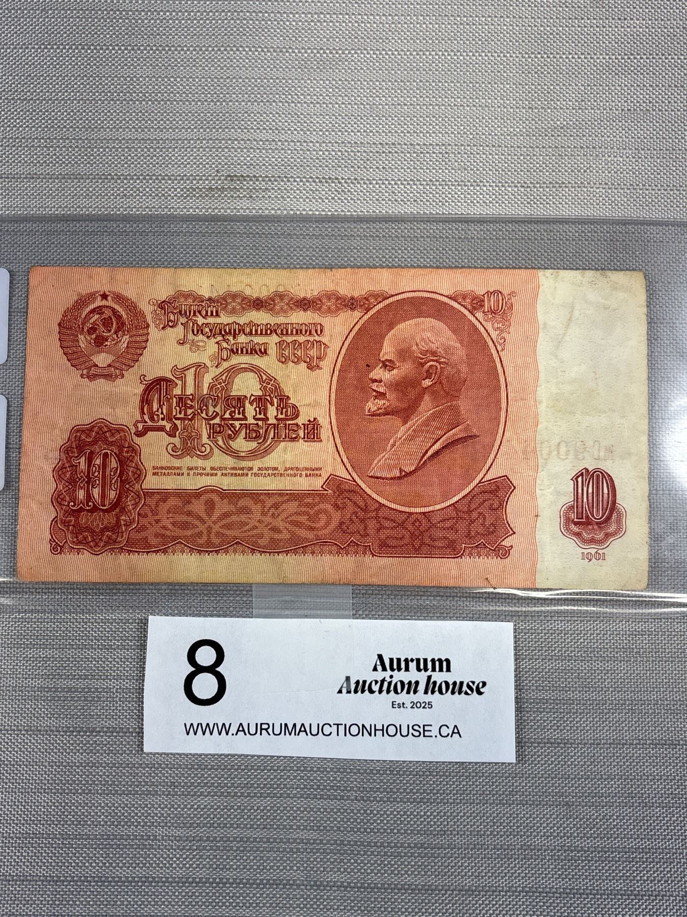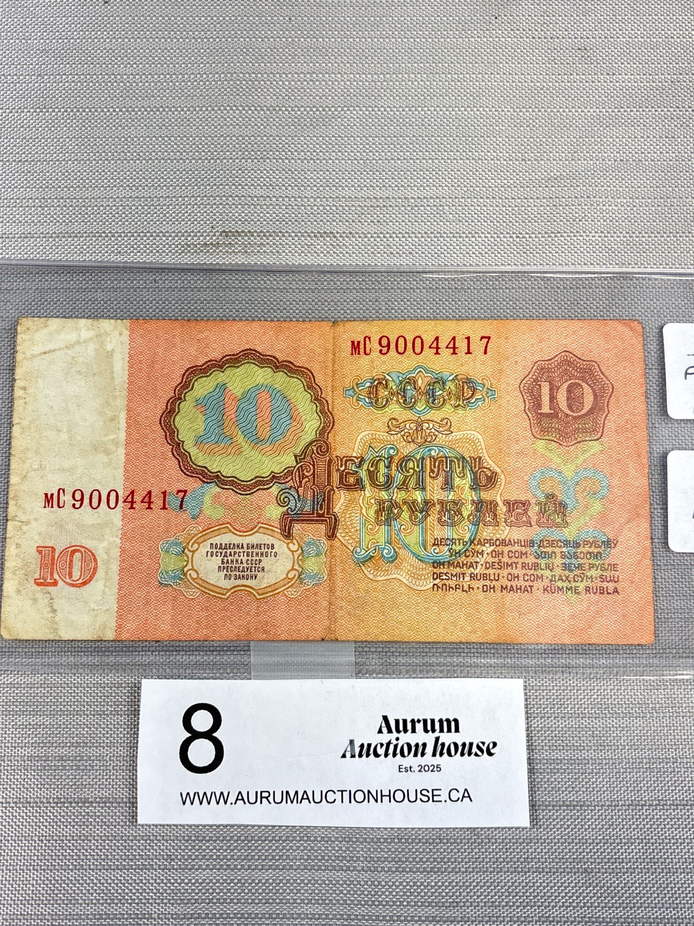 An Old CCCP Soviet Union Ten Rubles Bank Note in Holder