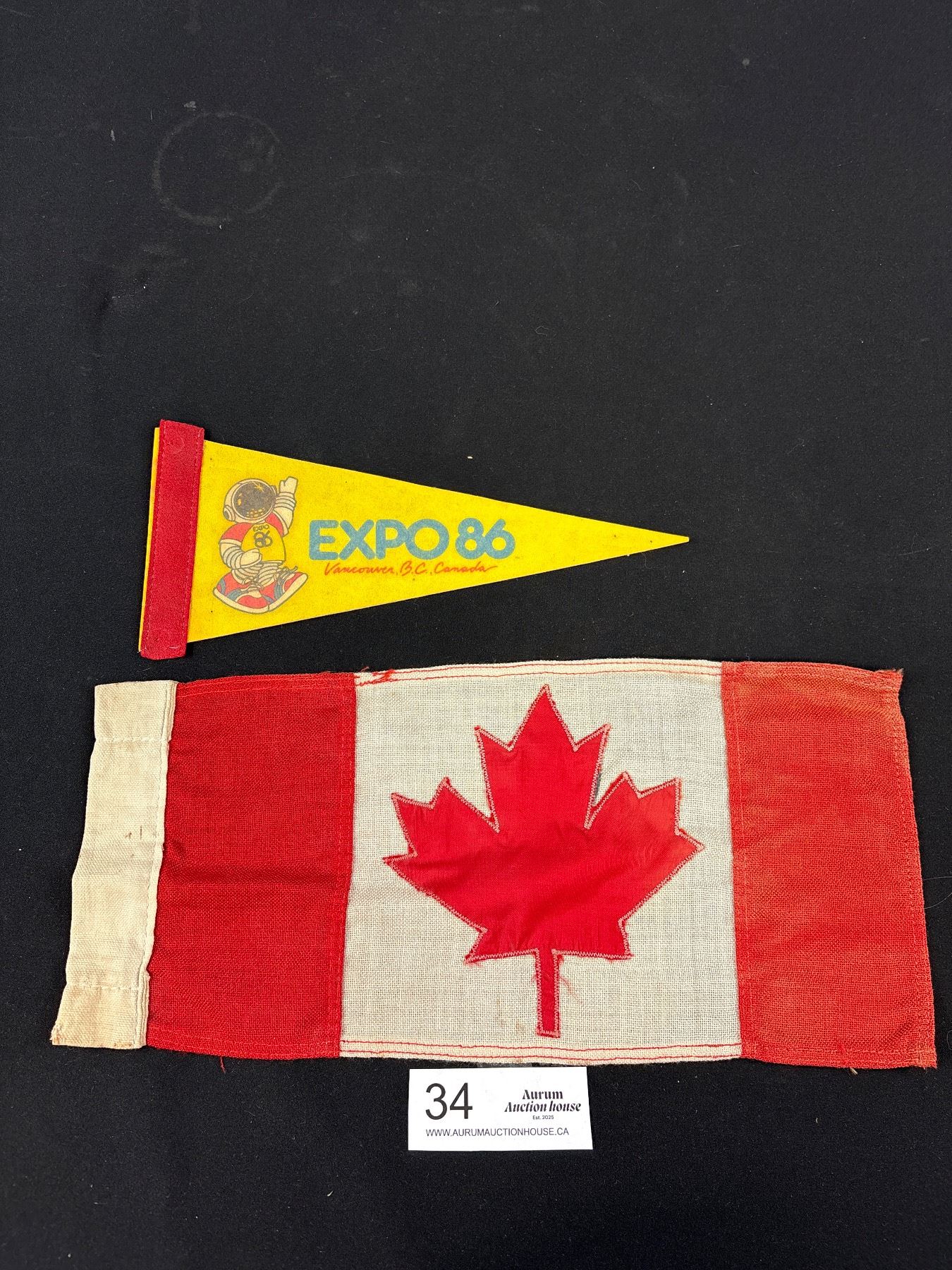 An Old Canadian Antena Flag + Expo 86 Penant Flag