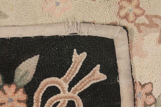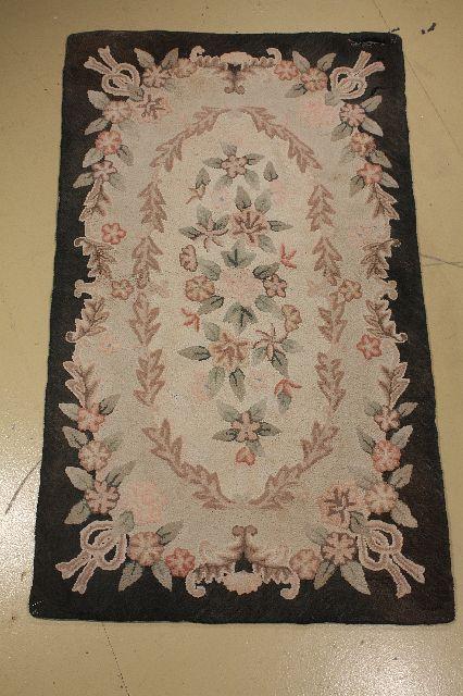 An Old Hooked Wool Rug. Note Condition: Corner Torn. 2 ft 11 in x 4 ft 10 in
