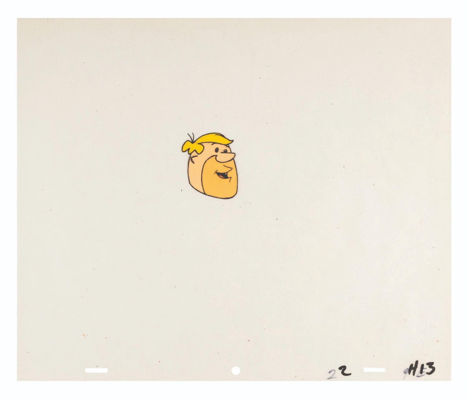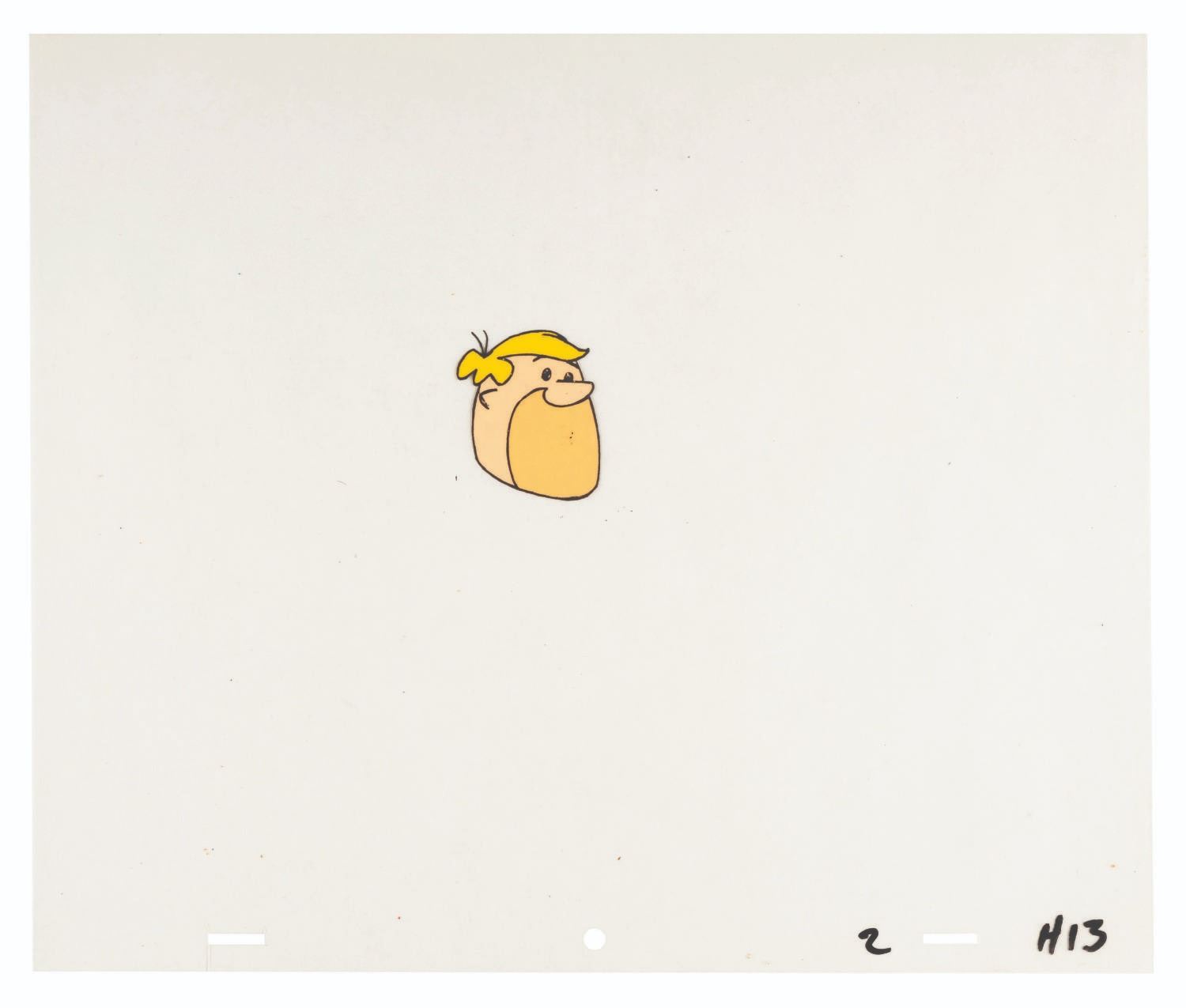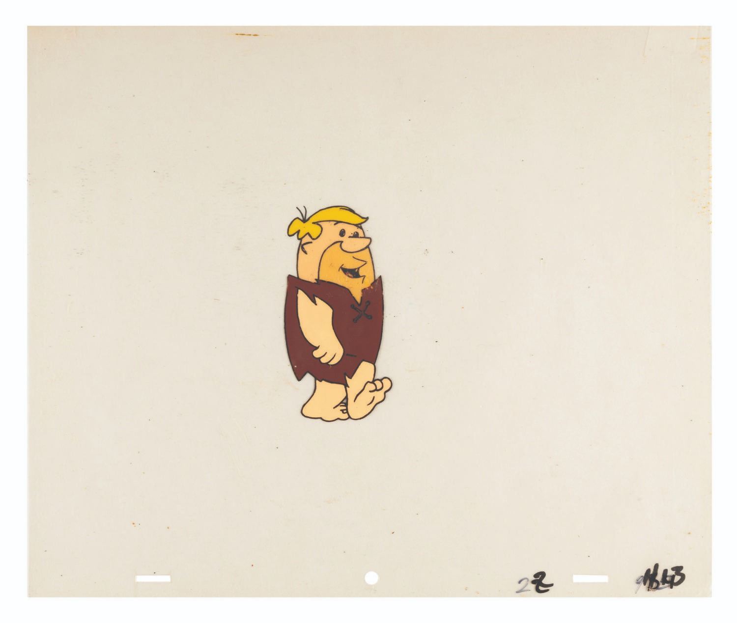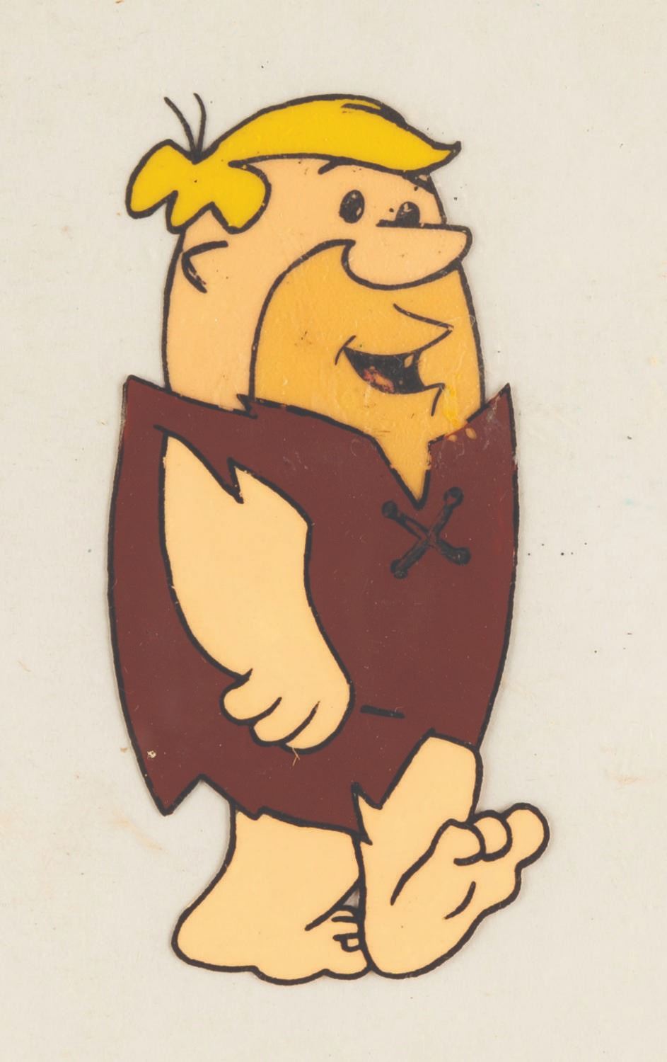 (Hanna-Barbera, 1970s) A hand-painted production cel of Barney Rubble from an unknown Flintstones production from the 1970s. The cel measures 10.25” x 12.5” with a character image size of 4” x 2” and is in good condition with wear from production use and paint residue from contact with another cel.