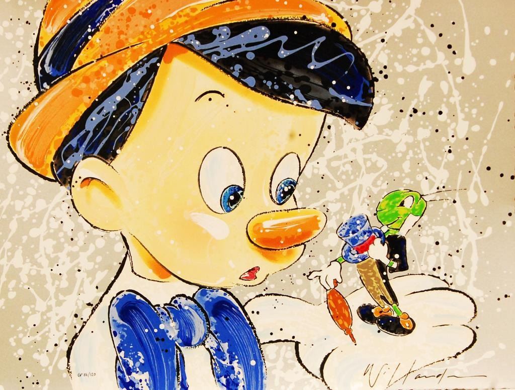 (2007) This is a beautiful embossed serigraph on wove paper of Pinocchio and Jiminy Cricket is titled "Boy Oh Boy" created by the artist David Willardson. It is signed in ink on the lower right and numered from the edition of 495 on the lower left. The image size is 16 x 21 in. Includes COA.