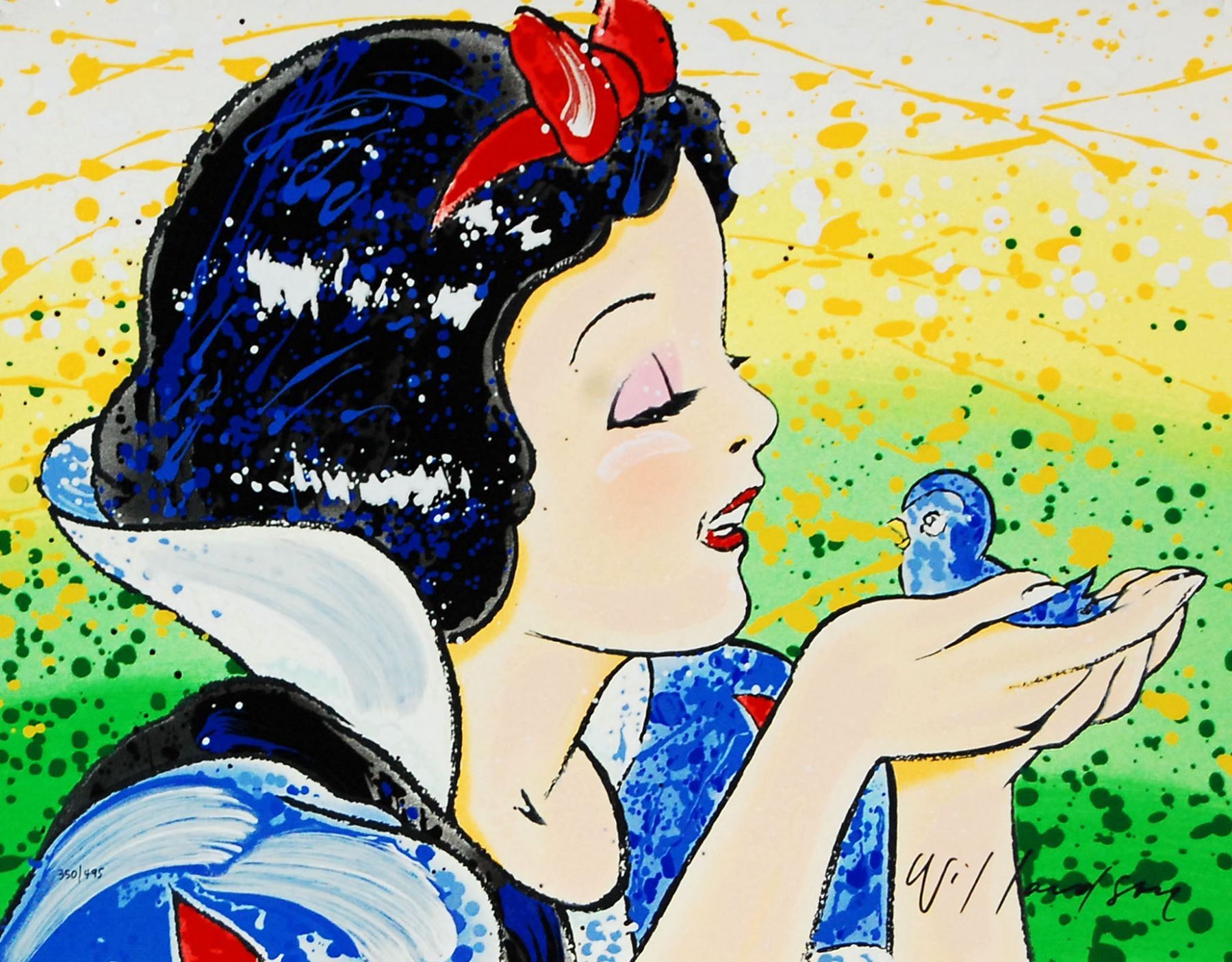 (2007) This is a beautiful embossed serigraph on wove paper of Snow White is titled "A Fine Feathered Friend" created by the artist David Willardson. It is signed in ink on the lower right and numered from the edition of 495 on the lower left. The image size is 14 x 18 in. Includes COA.
