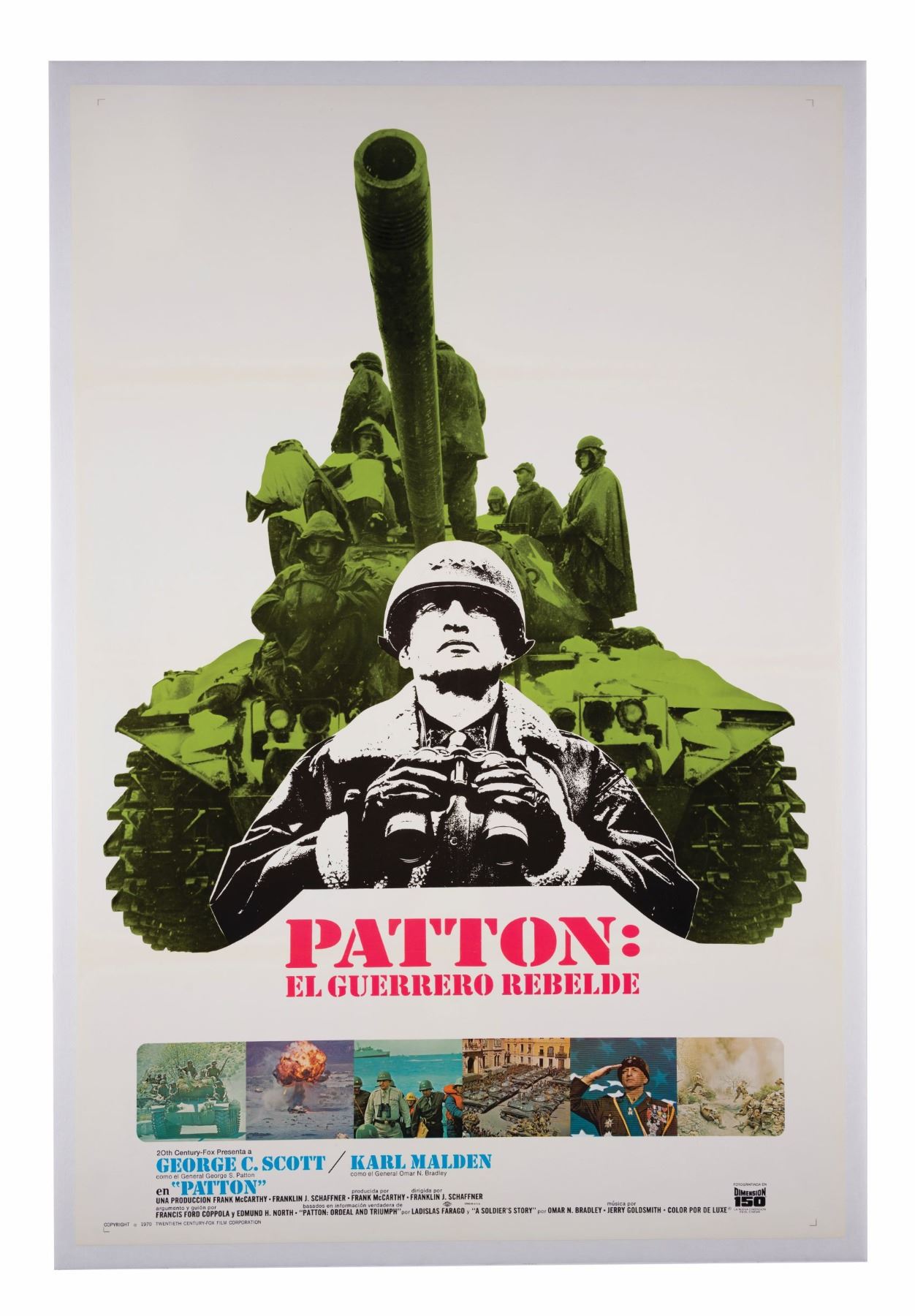 (20th Century-Fox, 1970) An original release Spanish one sheet poster for "Patton" starring George C. Scott. Measuring 28"x41" on a 29"x42" linen backing, the poster displays in very good condition with some creasing and wear from original folds.