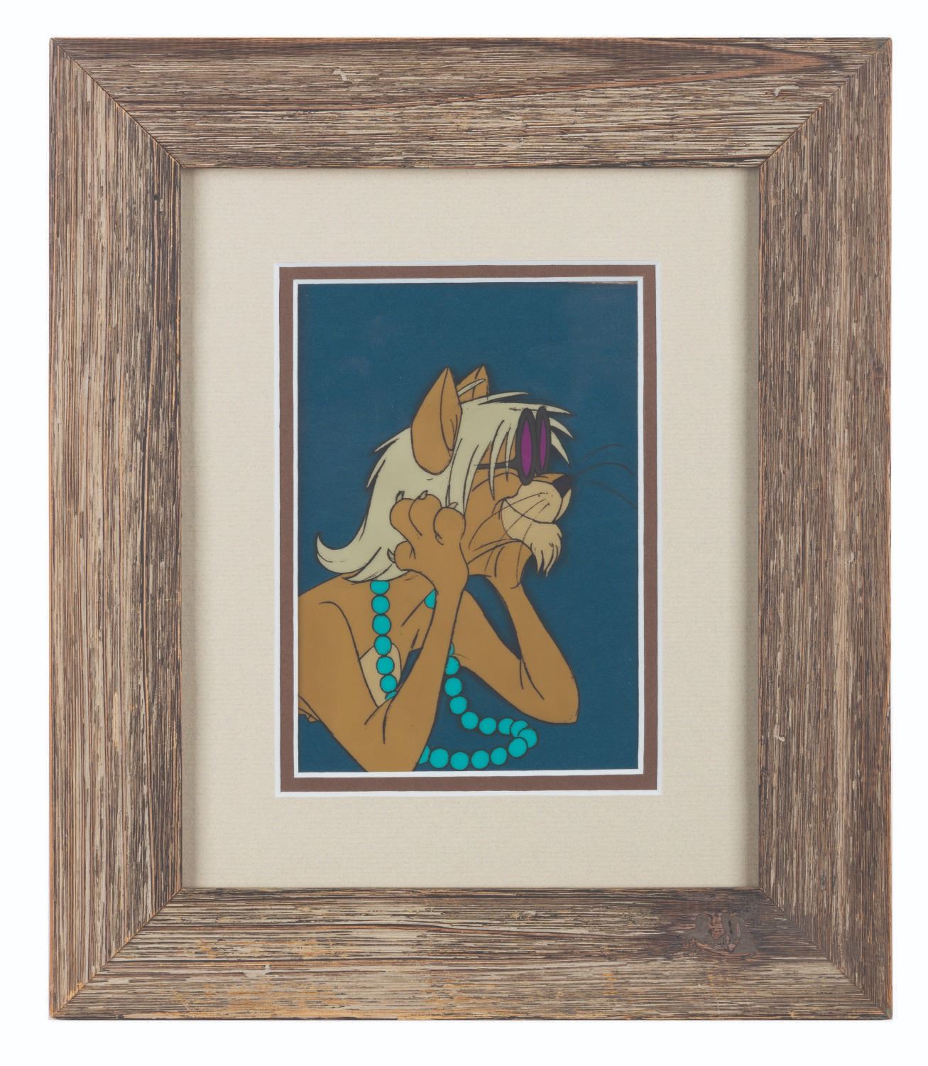 (Disney, 1970) An original trimmed production cel from Disney’s “The Aristocats” featuring Hit Cat. The character image measures 4.5” x 5.5”, in a matted frame measuring 7.5” x 9.5”, and is in fine condition.