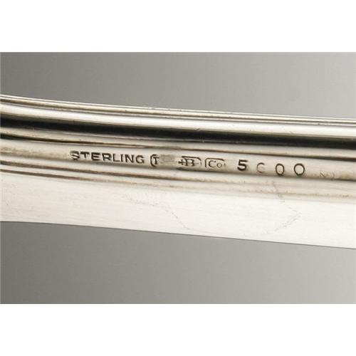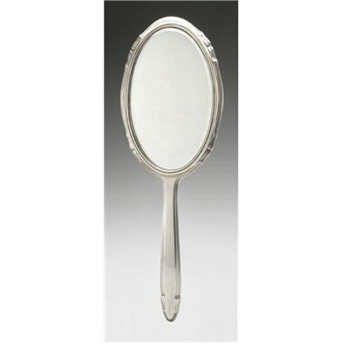 <B>An American Silver Hand Mirror</B></I><BR><B>R. Blackington & Co., North Attleboro, MA, Early Twentieth Century</B></I><BR><BR>Script monogram to the reverse <I>LEB,</B></I> hallmark to the side of the handle with <I>STERLING 5000</B></I><BR>12.4in. long x 4.2in. wide