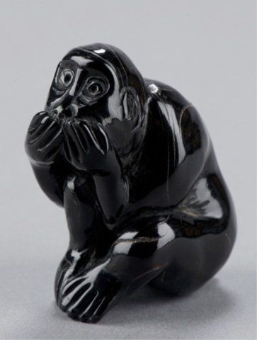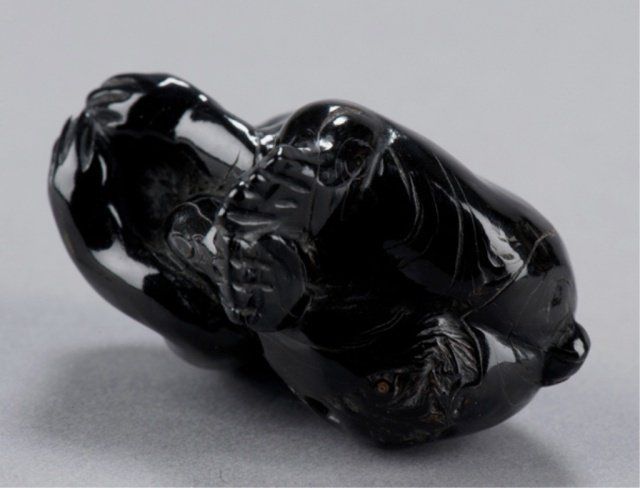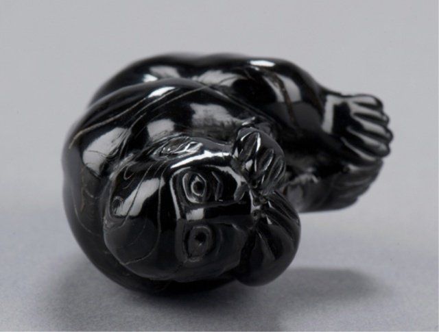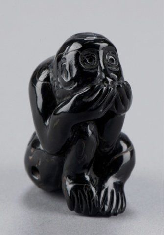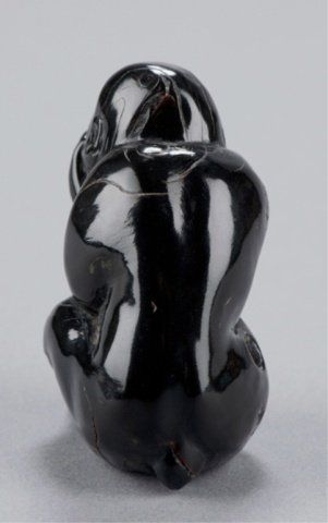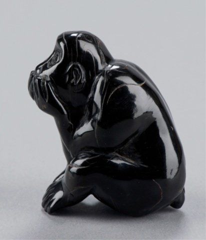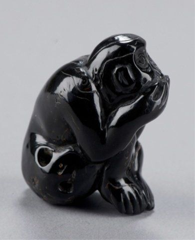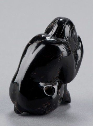 Early 19th century. Seated and eating a piece of fruit, in highly polished umimatsu. Unsigned. 2 1/8in (5.3cm). Provenance: Sotheby's, London, April 29, 1968; Lot 334.