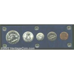 An Uncertified 1951 proof set that grades between PR64 and PR67, housed in a plastic Capitol holder. The silver coins have light golden-brown and aqua patina at the margins, while the Cent is mostly Red. A well preserved and very attractive set. 5 coins Important notice: We expect to be auctioning lots at the rate of 200-250 per hour. Sometimes eBay Premier live bid software cannot keep up with that pace, so we strongly recommend that you place a realistic proxy bid now as insurance to avoid disappointment. Also please note that all Heritage/CAA lots purchased through eBay Premier carry a 20% Buyer's Premium. Please make sure you read the Terms and Conditions.