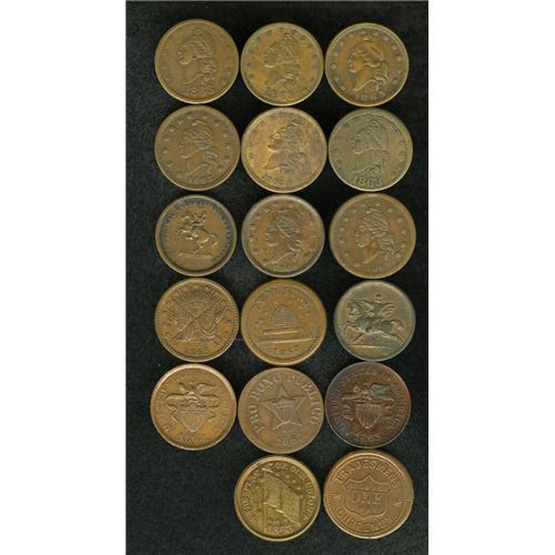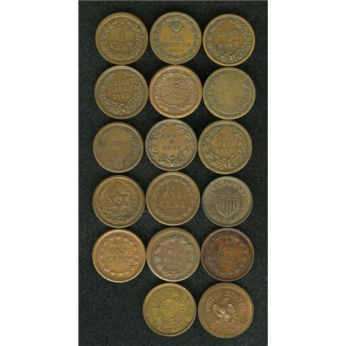 <B>An Uncertified lot of (17) Patriotic Civil War Tokens.</B></I>