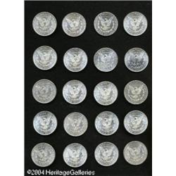 An Uncertified roll of 1880-S Morgan Dollars. The g <B>An Uncertified roll of 1880-S Morgan Dollars.</B></I> The grades range from AU50 to MS63, some of the pieces have been cleaned. 20 Coins <BR><BR><B>Important notice:</B> Heritage usually auctions material at the rate of 200-250 lots per hour. On some occasions eBay Live bid software or the Internet may not be able to keep up with the pace of the auction. We recommend placing a realistic absentee bid now as insurance to avoid disappointment. Occasionally the auctioneer may eliminate or reject an eBay Live bid, and the auctioneer may also reopen a lot after the close of the eBay live bidding (usually because we missed an audience bid), and may reject your bid even if it shows you as the winning bidder. By bidding via eBay Live, you agree that Heritage may award the lot to another bidder at its sole discretion under the circumstances described above or any other reasonable circumstances. Since eBay bids are not shown to us until we open the lot on the floor, we treat those bids just like floor bids. In most cases the floor responds before the eBay bid is presented to us, due to Internet lag time, so for consistency we have made it a policy that floor bids are always considered first over tie eBay live bids. Also please note that all Heritage lots purchased through eBay Live carry a 20% Buyer's Premium. Please make sure you read the Terms and Conditions before you bid. This lot is being auctioned in conjunction with a live floor auction by Heritage Galleries & Auctioneers. All final auction and invoice information will be supplied by Heritage Galleries & Auctioneers, and all other information should be considered preliminary. Lot:8056