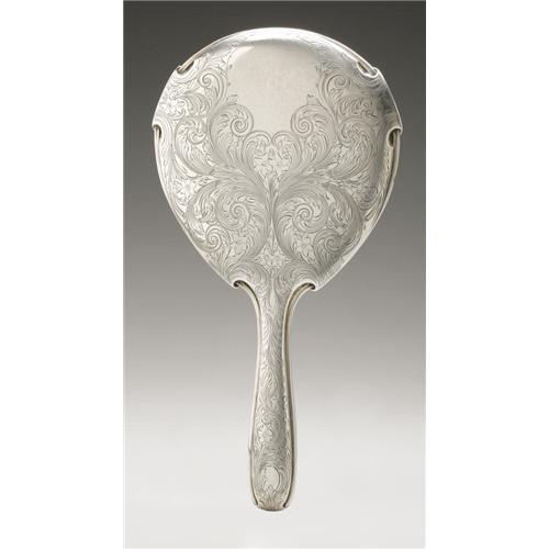 <B>An American Silver Hand Mirror</B></I><BR><B>Unger Bros., Newark, NJ, Early Twentieth Century</B></I><BR><BR>Hallmark to the top of the handle<BR>11.3in. long x 6.1in. wide