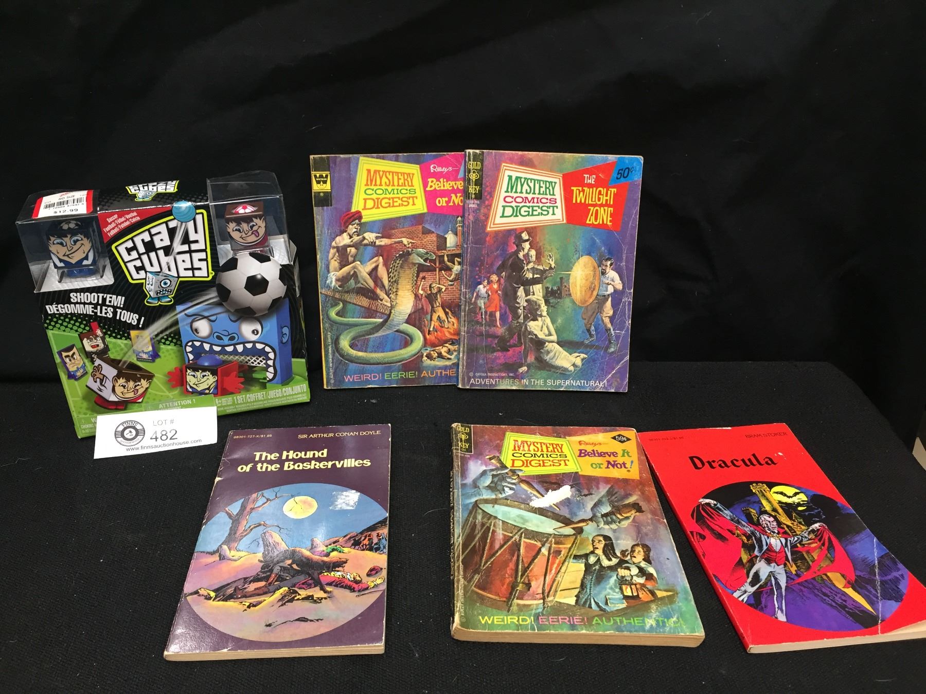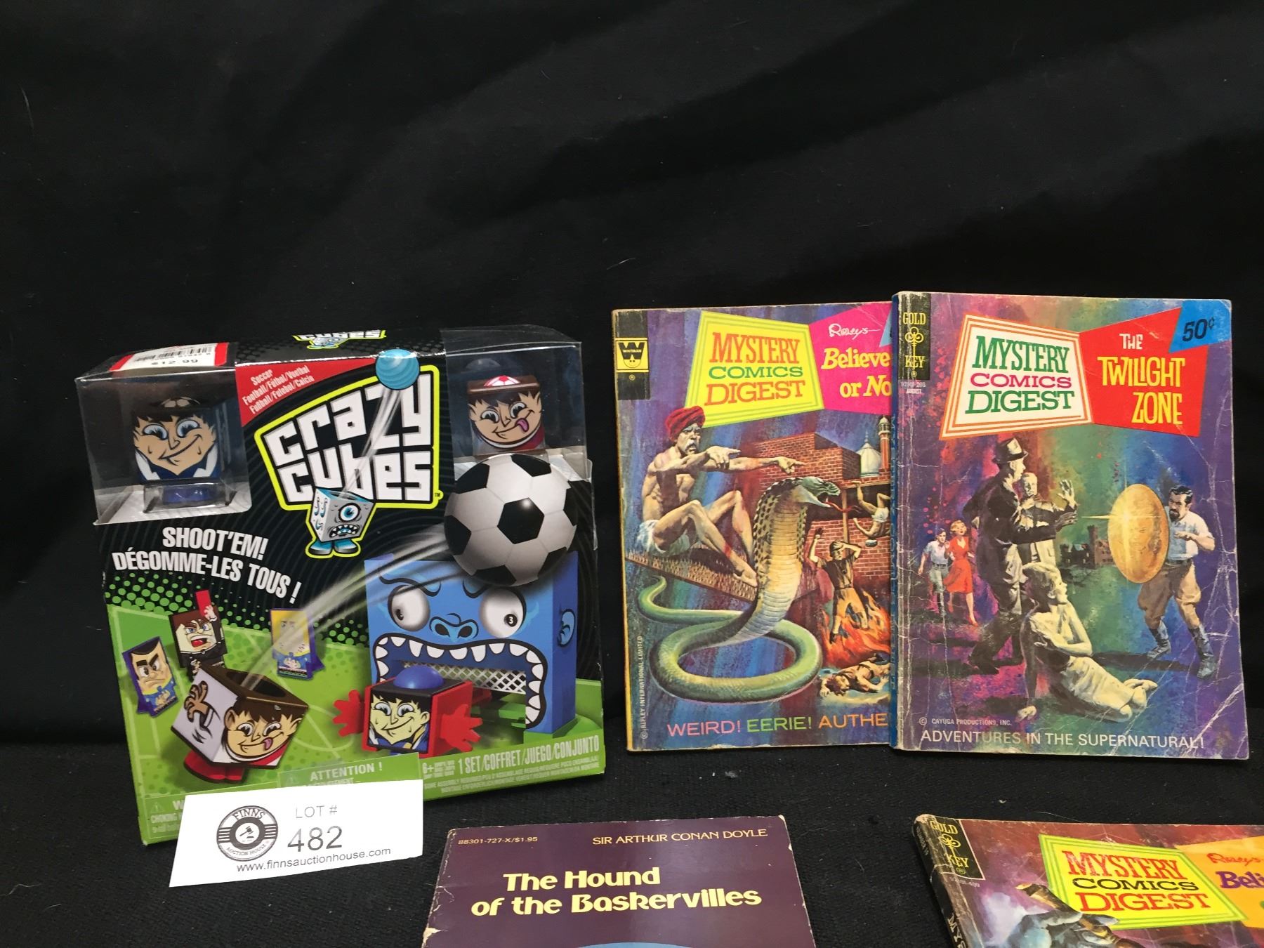 An Unopened Box of Crazy Cubes and A Lot of 5 Vintage Mystery Books