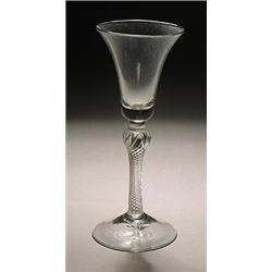 An airtwist wine glass, the bell bowl supported on a shoulder-knopped stem filled with spiral thr...