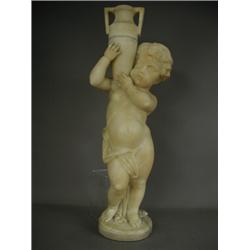 An alabaster figure of a putti holding an urn, probably Italian circa 1900, 65cm high Est. 200/300