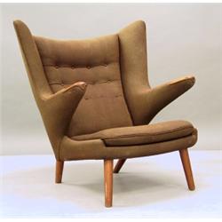 teak and fabric, Hans J. Wegner, "Bamse", 1950/51, manufactured by AP-stolen; 2 buttons missing in the back