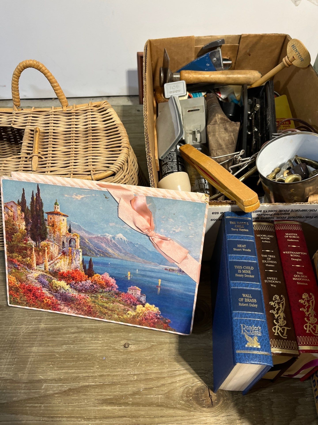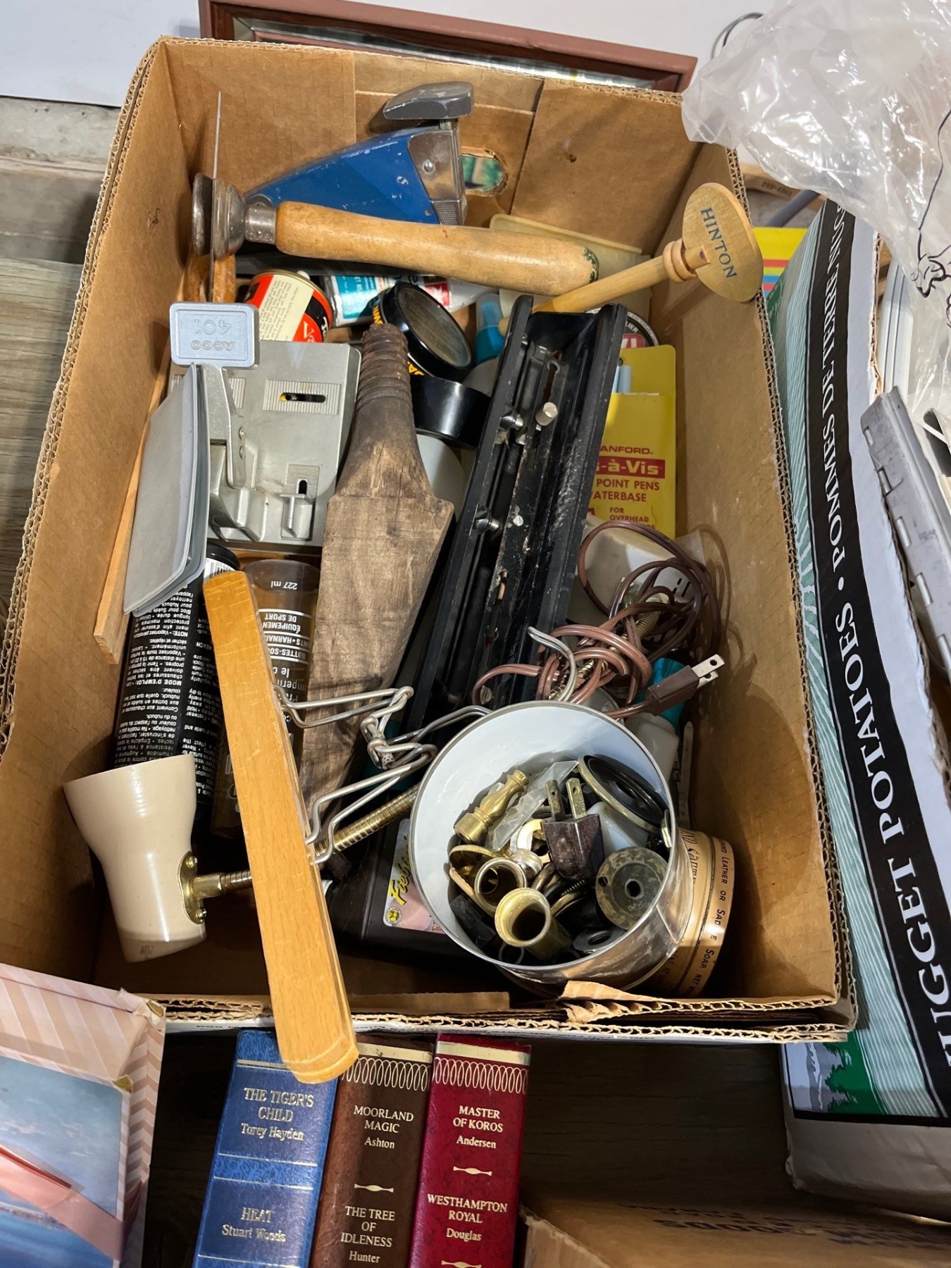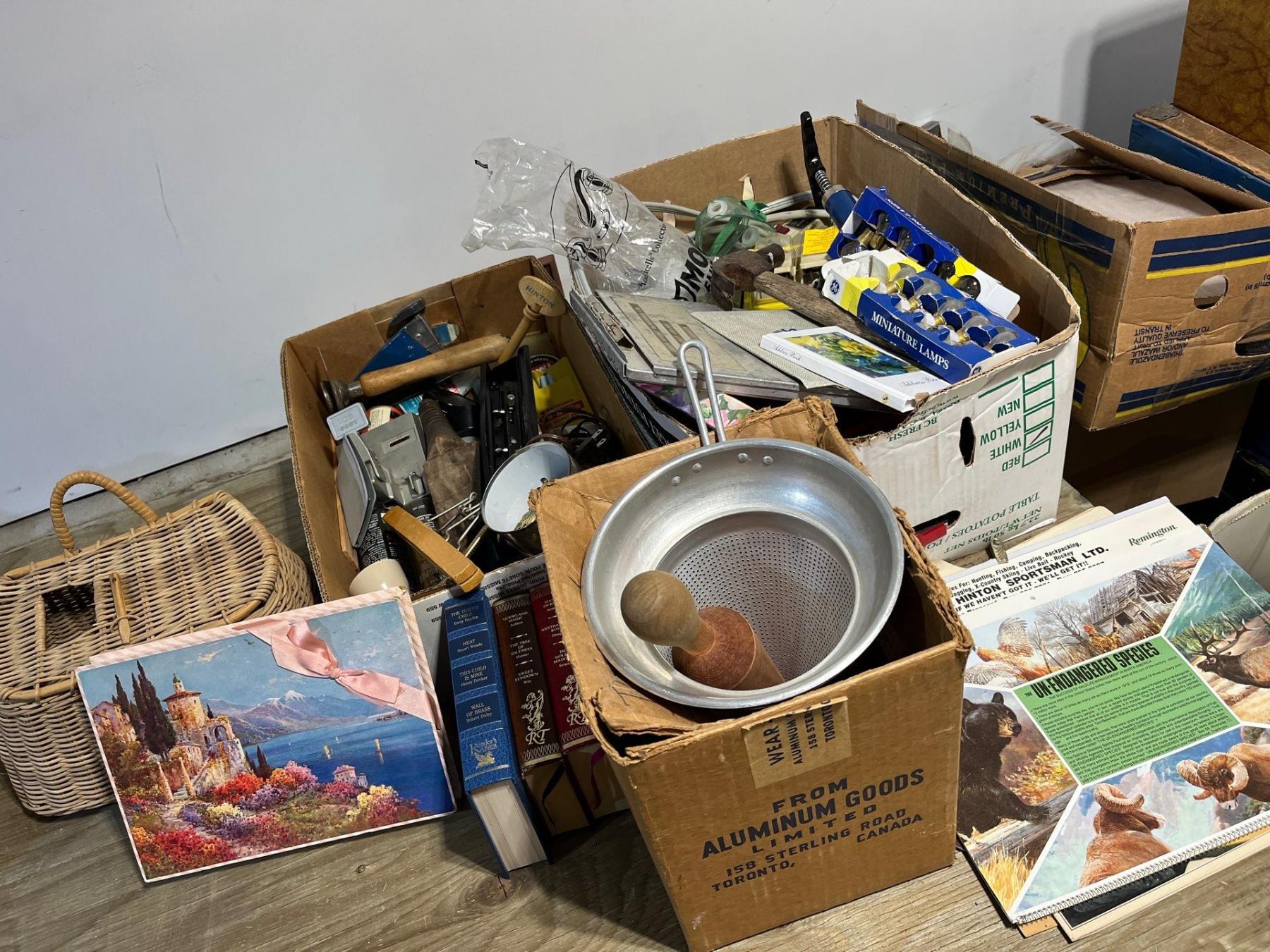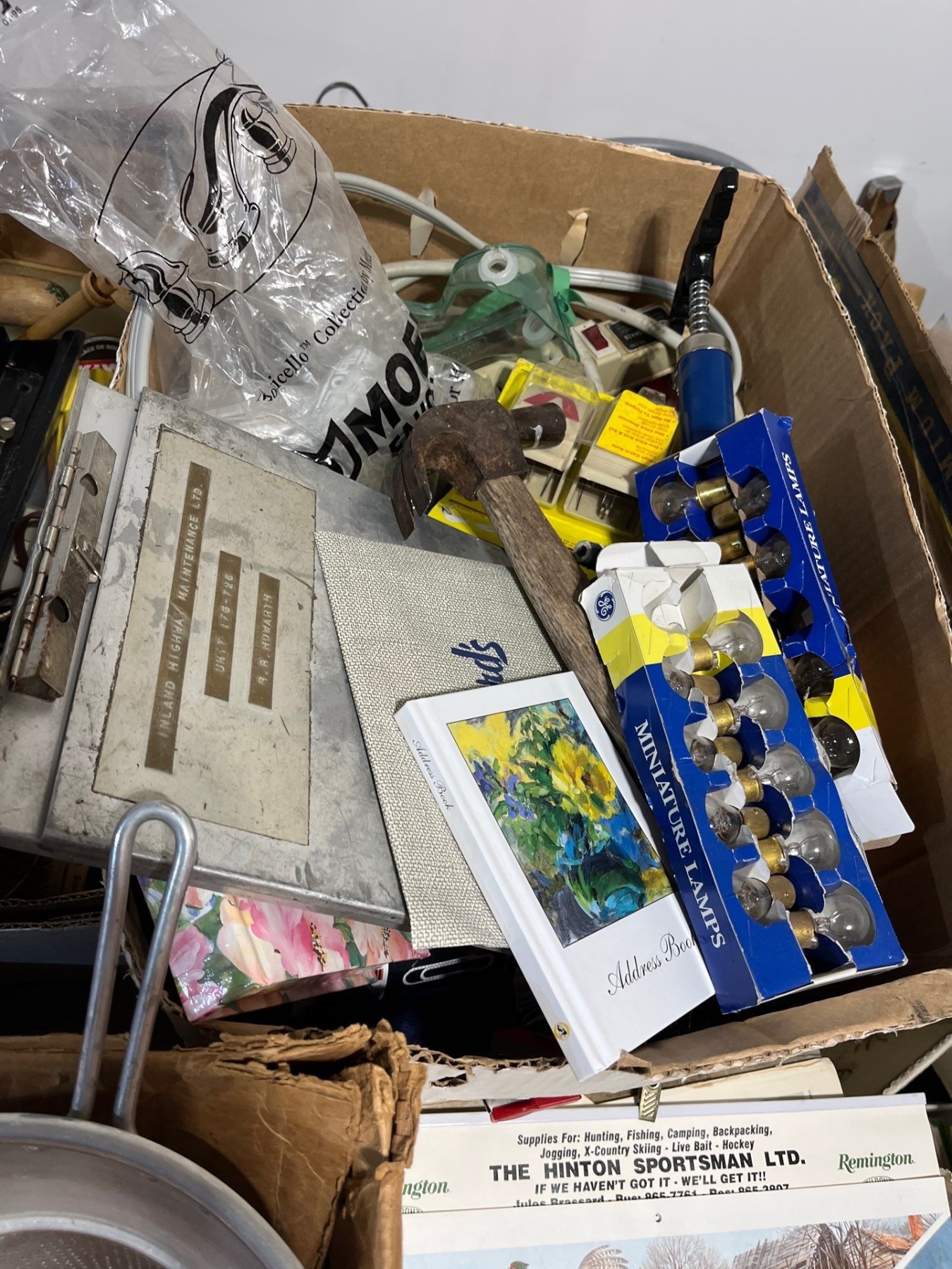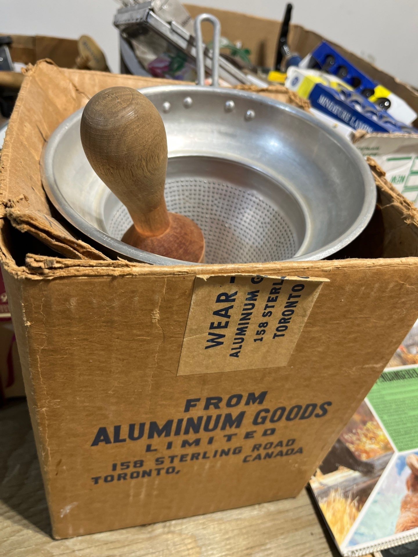 An assortment of miscellaneous items number eight vegetable press in original box from aluminum goods Limited.