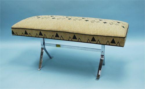 An attractive 1950's style window seat with chrome metal "X" shaped base and plush seat cushion. 44" x 20", 20" high. Recently reupholstered in beige fabric.