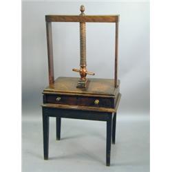 An early 18th Century oak and fruitwood linen press, with an acorn finial, and single drawer,...