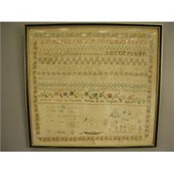 An early 19th Century Spanish (Colonial?) needlework sampler, sewn with 6 alphabets, by Adela...