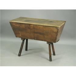 An early 19th Century elm dough bin with a shaped wavy apron supported upon four inverted tapering octagonal legs. 67.5cm high, 94cm wide