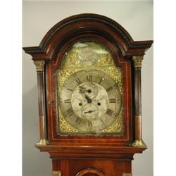 An early 19th Century mahogany longcase clock, the hood with reeded columns and gilt corinthia...