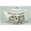 An early 19th century black-printed pearlware teapot and cover, of oval shape with "D" handle and...